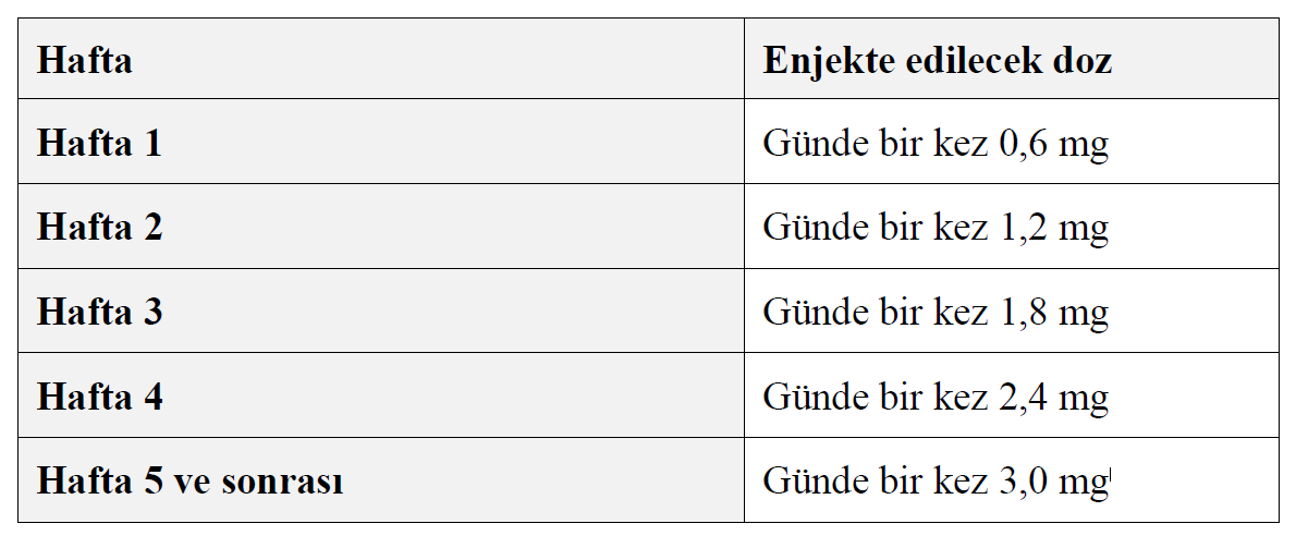 Tedavinin 5. haftasında önerilen 3,0 mg dozuna ulaştıktan sonra tedavi süreniz bitene kadar bu dozu kullanmaya devam ediniz.